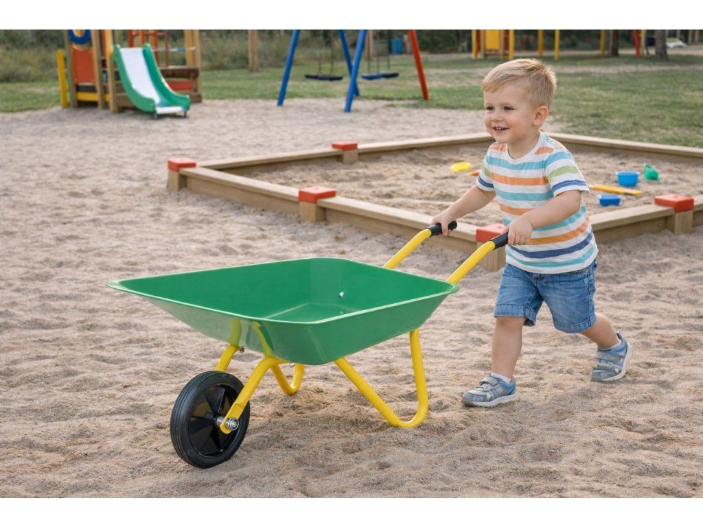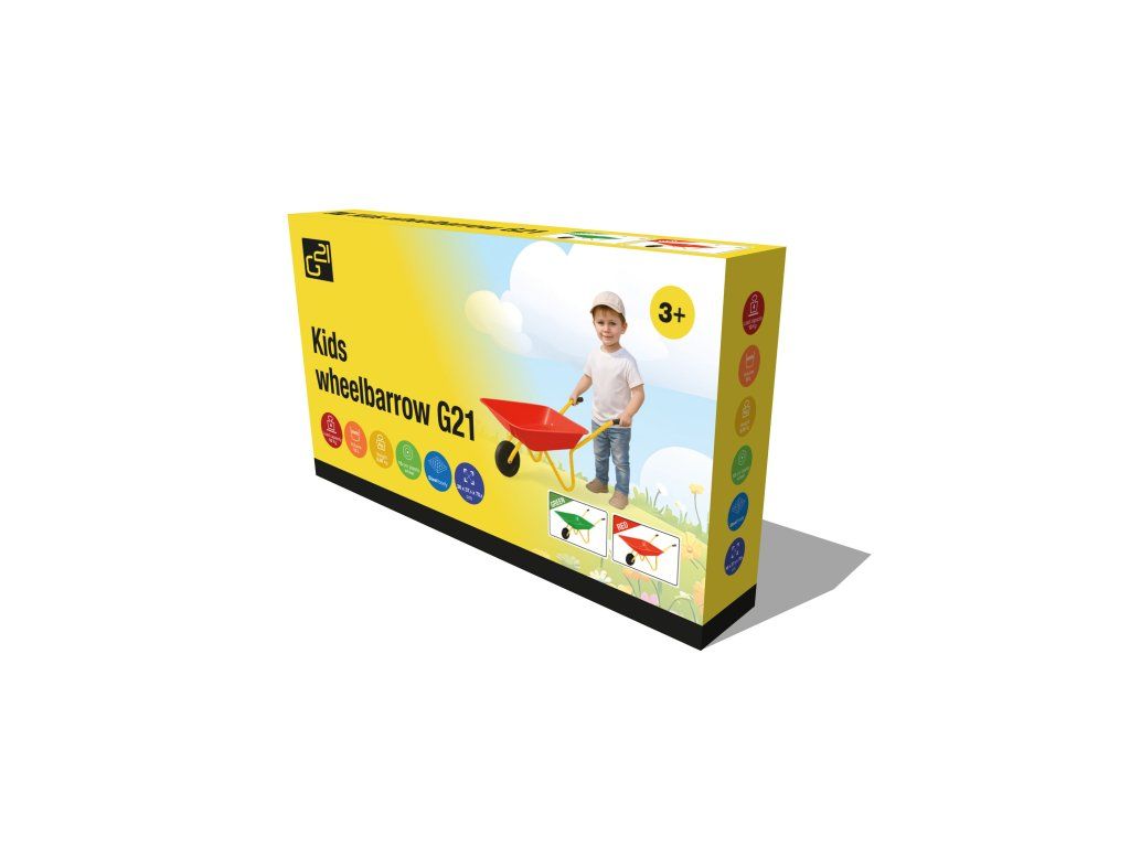 Každé malé dítě přrozeně zrcadlí své okolí. Proto je dobré, aby mělo takové hračky, které mu umožní začlenění do běžných činností a rozvíjí tak jeho dovednosti. Dětské zahradní kolečko G21 s pevnou kovovou konstrukcí zvládne jakoukoliv dětskou výpravu. Převezení kopice písku na pískovišti, větví ze stromu nebo substrátu na květiny? Žádný problém. Díky objemu 13 litrů a nosnosti až 10 kg kolečko zvládne všechny běžné činnosti, se kterými se děti mohou na zahradě nebo na hřišti setkat. Udělejte svým dětem radost a zapojte je do dění na vaší zahradě či dvorku.