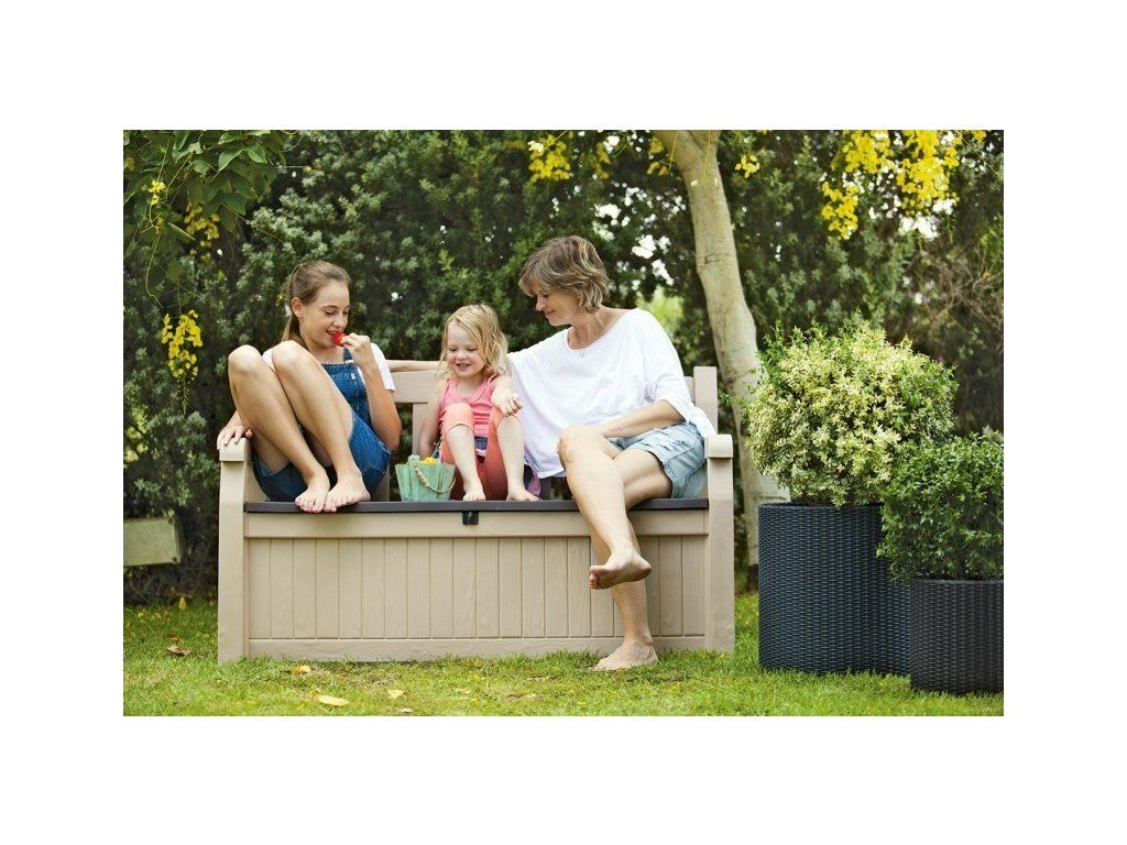 Lavice Keter Eden Garden Bench se však dá využít také jako praktický úložný prostor se štědrou kapacitou až 265 l. Ten najde své uplatnění při skladování podsedáků, polštářů, zahradního i dílenského nářadí či dětských hraček, o které tak už nebudete zakopávat při procházce po vašem dvoře či zahradě.