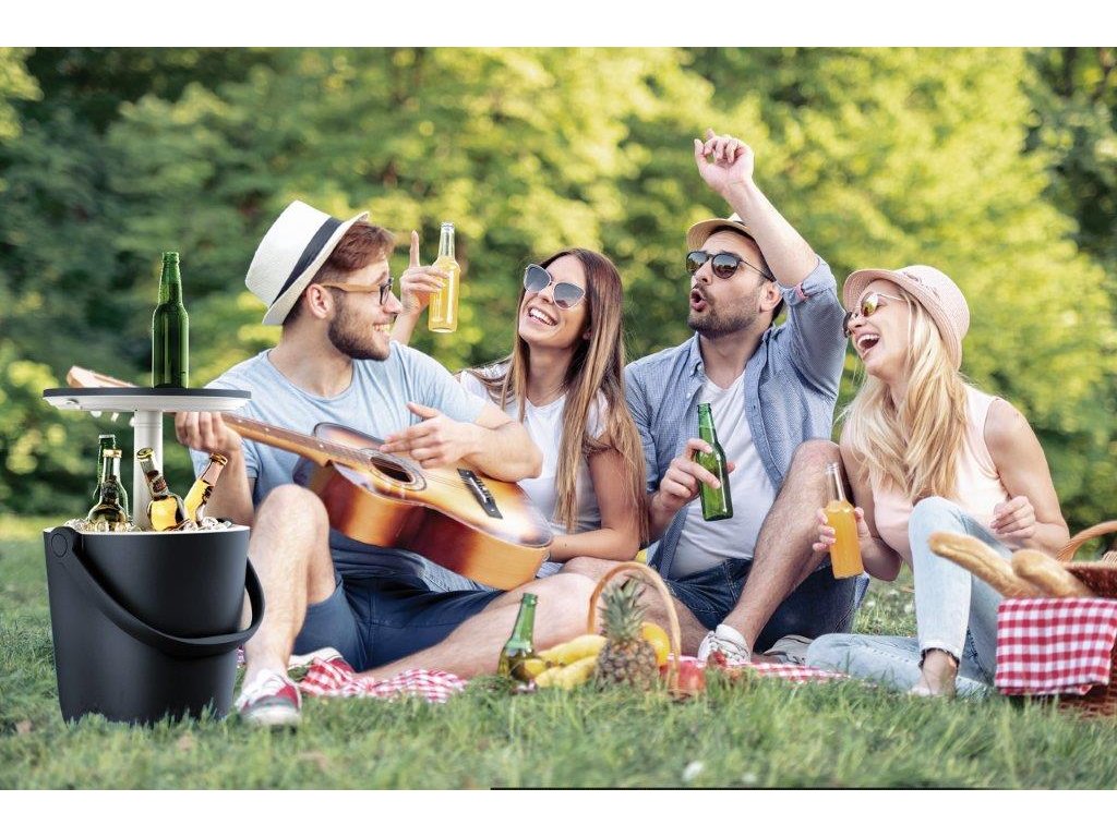Keter Cool Bar Gobar je přenosný rozkládací stoleček s úložným prostorem a madlem pro snadné přenášení. Osvěžte se oblíbenými nápoji na zahradní party u bazénu nebo na pikniku s rodinou. Po rozložení vznikne z malého stolečku praktický a stylový piknik bar pro každou příležitost. Úložný prostor ukrytý pod deskou stolku naplňte ledem a dopřejte si ledové osvěžení v horkých letních dnech. Díky dvojitým stěnám stolku vydrží nápoje studené ještě déle. Rozkládací stoleček je vyrobený z polypropylenové pryskyřice, takže je odolný vůči povětrnostním vlivům, UV záření i vůči mechanickému opotřebení.