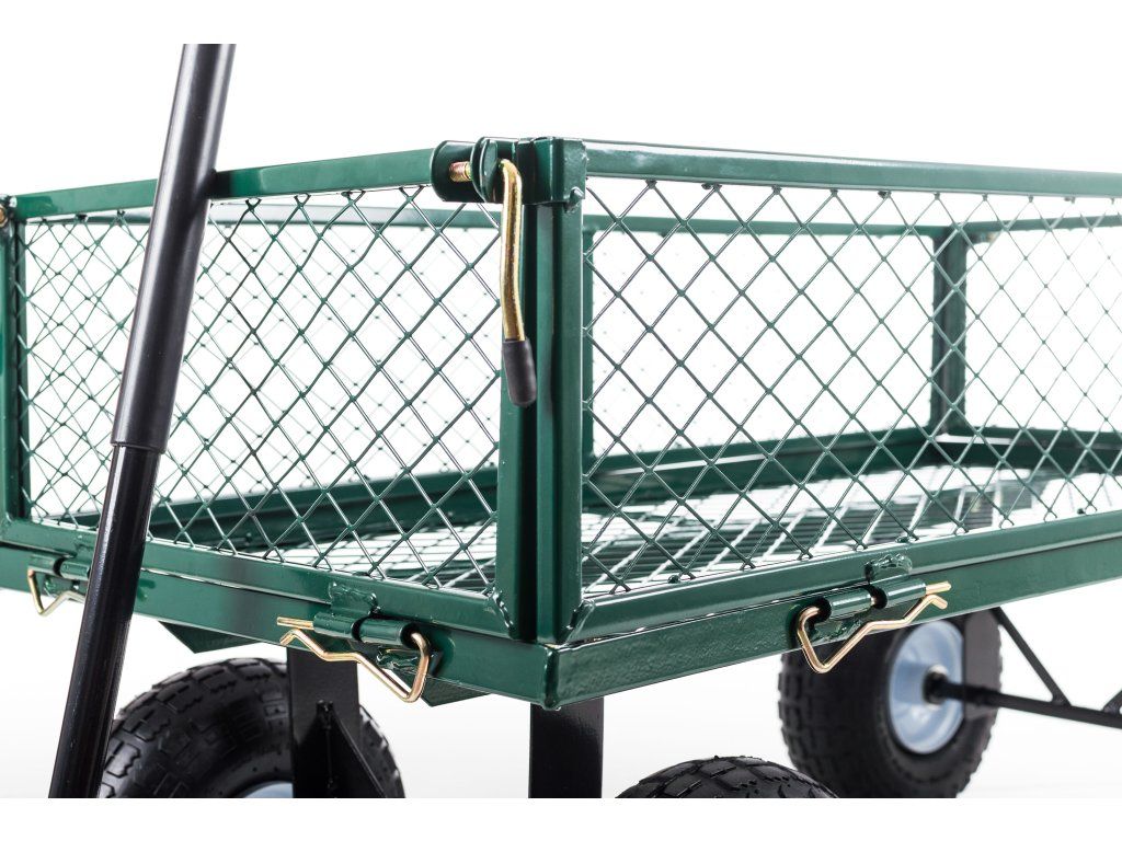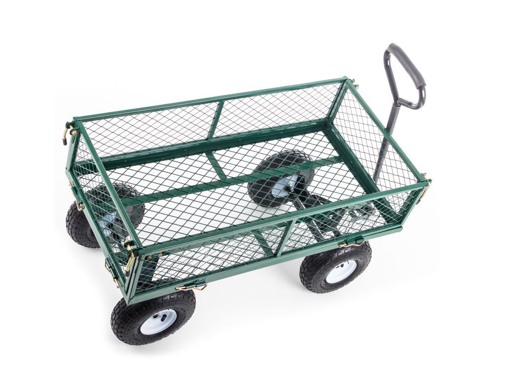 Kovový zahradní nebo stavební vozík G21 GD 90 má skládací korbu s kovovým výpletem o objemu 90 l, nosnost 200 kg a 4 nafukovací kola na dvou nápravách, z nichž jedna je řídící. Vozík se díky tomu snadno ovládá a velmi snadno a pohodlně se s ním manipuluje.