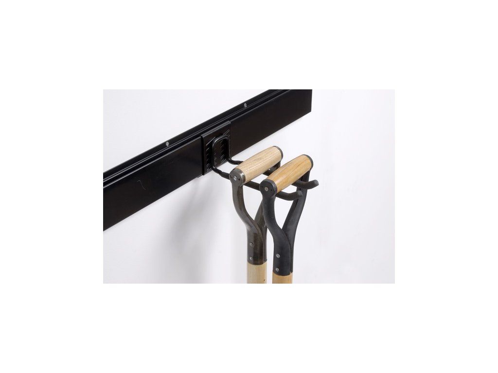 Držák na nářadí je jednoduchý na připevnění a umožní bezpečné zavěšení téměř každého druhu nářadí. Je opatřen gumovým návlekem a zavěšuje se na závěsnou lištu s rozměrem 61 x 10 cm, kterou lze spojovat spojnicí a zakončit plastovou záslepkou.
