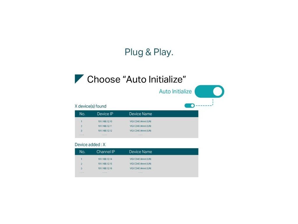 S TP-Link VIGI vytvoříte rozmanitou síť. Ověřený standard ONVIF umožňuje komunikaci bezpečnostních kamer se záznamovým zařízením. Snadno k němu připojíte IP kamery od VIGI i dalších značek. Díky technologii Plug & Play je jejich instalace rychlá. Po zapojení se totiž okamžitě aktivují.